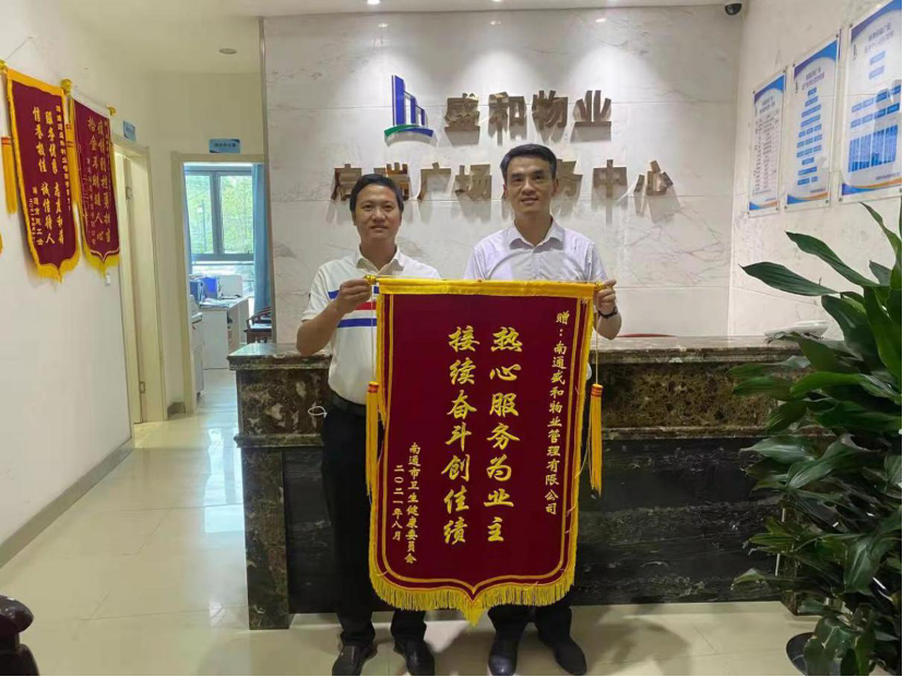 近日,南通市衛(wèi)生健康委員會(huì)將一面“熱心服務(wù)為業(yè)主、接續(xù)奮斗創(chuàng)佳績(jī)”的錦旗送到盛和物業(yè)啟瑞廣場(chǎng)服務(wù)中心,感謝物業(yè)公司在其開展新冠肺炎疫情處置聯(lián)合實(shí)戰(zhàn)演練時(shí)期盡職盡責(zé)、熱情周到的服務(wù)。